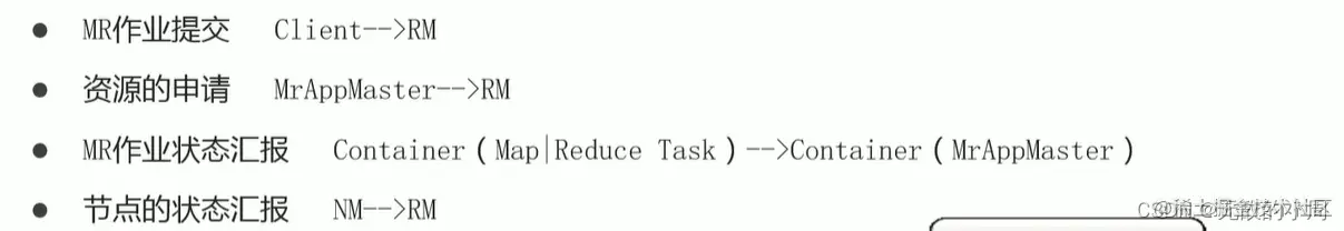 - RM负责管理NM,给NM下命令,NM是打工的,符合主从架构。