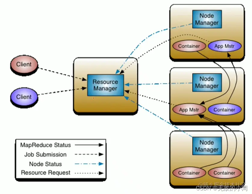 - Client(客户端就是提交程序向YARN申请资源的地方,可以是MapReduce,spark等 )