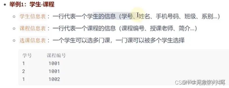 则学生信息表和课程信息表就是多对多的关系。