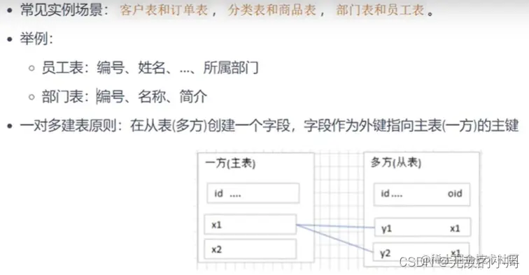 员工表中有具体员工的部门,部门表中有各种部门分类等信息。这两张表中都存在着关系。