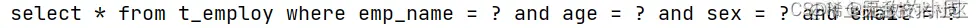 <!-- 避免在select后面写太多的字段名,通过sql标签定义常用的字段名通过include引用sql片段--> <sql id="empColums">eid,emp_name,age,sex,email</sql> <select id="getEmpByCondition" resultType="Emp"> select <include refid="empColums"></include> from t_employ </select>
