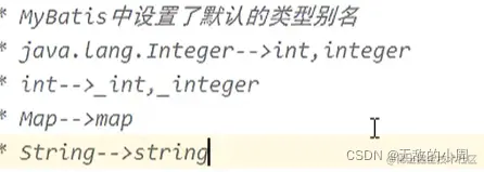 <!--设置类型别名--> <typeAliases> <!-- 用一个别名User,来代替全类名pojo.User,这个别名不区分大小写 如果不写alias属性,那么就会分配一个默认的别名,这个默认的别名就是类名且不区分大小写 所以写了个User和不写效果一样 --> <!-- <typeAlias type="pojo.User" alias="User"></typeAlias>--> <!-- 以包为单位,给包下所有的类设置默认别名,这里给pojo下面所有的包都设置了默认别名且不区分大小写,这个比较常用--> <package name="pojo"/> </typeAliases>
