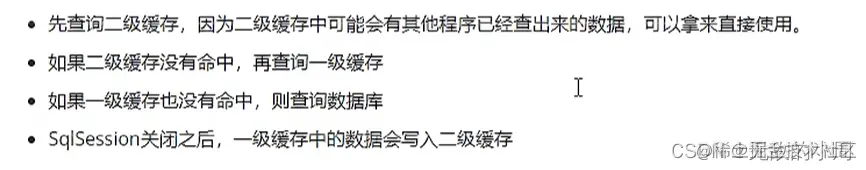 在没有提交或者关闭sqlSession时,查询的数据会保存到一级缓存中,如果开启了二级缓存,那么提交或关闭sqlSession后,查询的数据会保存到二级缓存中