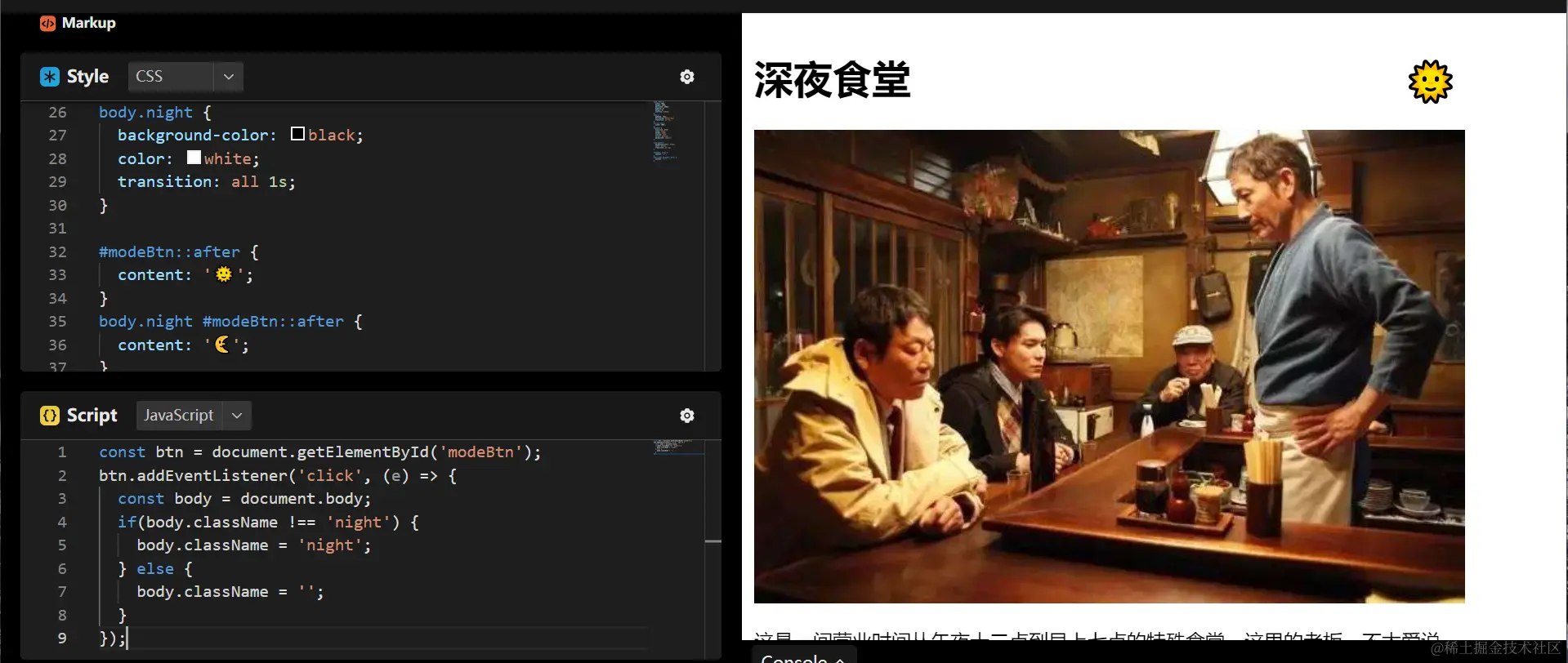 需求:写一段JS,控制一个网页,让它支持浅色和深色两种浏览模式。
