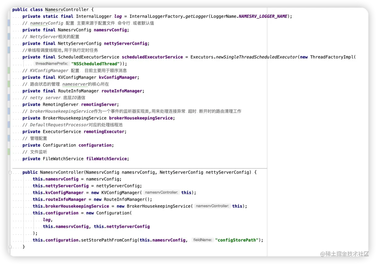 NamesrvController类主要属性介绍