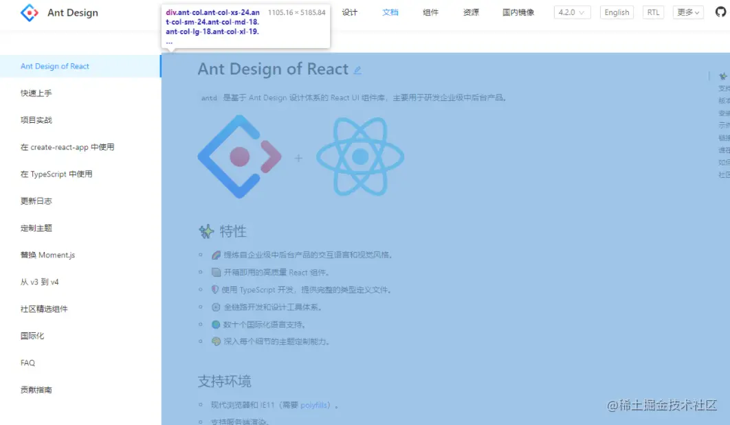 比如 Ant Design 文档,蓝色区域为主要内容布局容器,侧边栏为次要内容布局容器