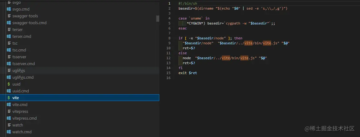 npm和yarn cnpm pnpm 等都是node的依赖管理器 他们都只是对 package.json 进行解析而已,npm run xxx的时候,首先会去项目的package.json文件里找scripts 里找对应的xxx,然后执行 xxx的命令(会先在当前 node_modules/.bin下面看有没有同名的可执行文件,如果有,则使用其运行。).bin下面的文件代表的是软连接(如何知道软连接在哪里执行:对应包文件package.json中的bin字段),在我们安装对应包的时候npm会帮我们配置好软连接,这 种软连接相当于一种映射 ,当我们运行对应的npm scripts命令的时候, 就会到 node_modules/bin中找对应的映射文件,然后再找到相应的js文件来执行。