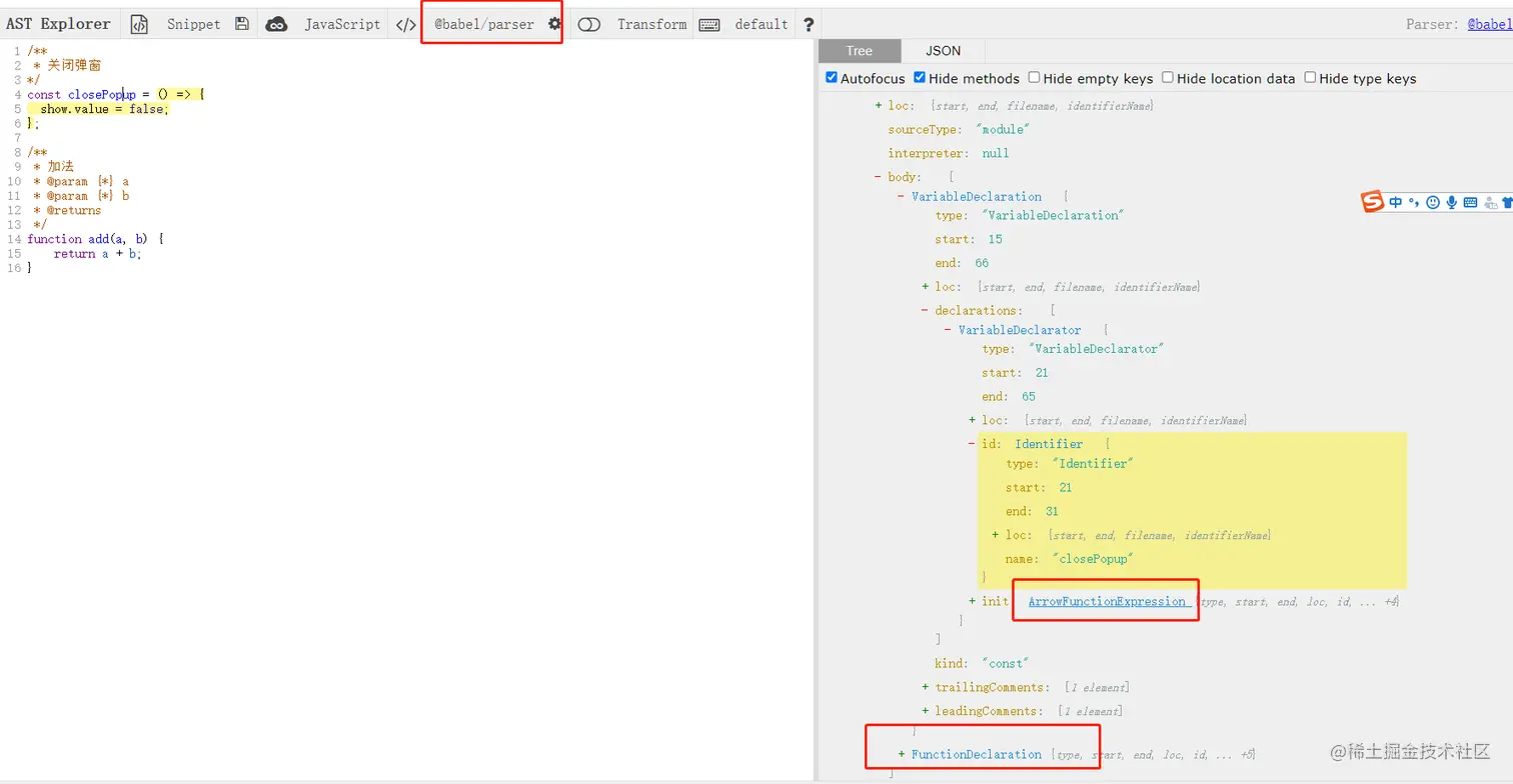 对应ast 结构,两种方法对应分别是VarDeclaration/ArrowFunctionExpression和FunctionDeclaration
