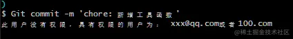 console.log(chalk.red('此用户没有权限,具有权限的用户为: xxx@qq.com或者100.com'));
