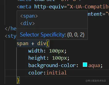 如图,对div进行选择,出现了两个标签名,故此选择器权重为(0,0,2)