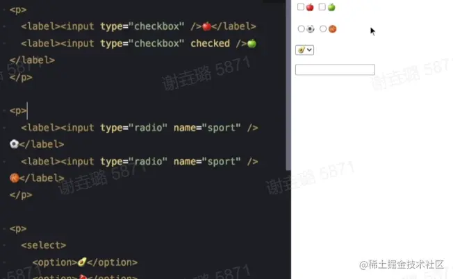 <label><input type="checkbox" />xx </label>\选多个数据<input type="radio" name="sport"/>限制用户只能选一个。互斥关系通过name来达到多个radio之间如果name相同用户只能从相同名字间去选择一个;