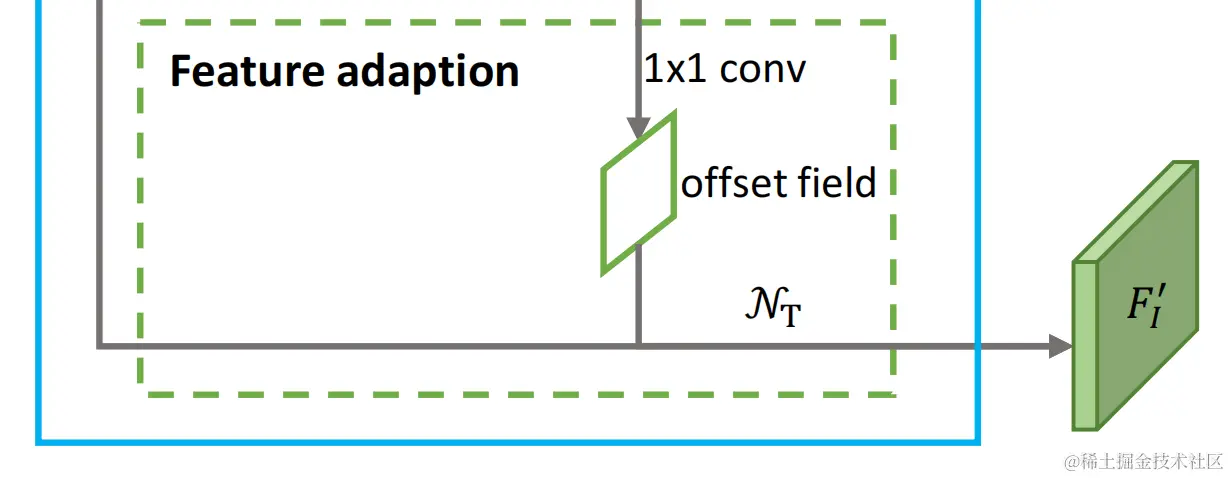由于每个位置的形状不同,大的anchor对应较大感受野,小的anchor对应小的感受野。所以不能像之前基于anchor的方法那样直接对feature map进行卷积来预测,而是要对feature map进行feature adaptation。作者利用可变形卷积(deformable convolution)的思想,根据形状对各个位置单独进行转换。