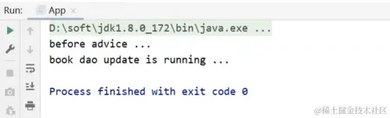<pre class="prettyprint hljs cpp" style="padding: 0.5em; font-family: Menlo, Monaco, Consolas, "Courier New", monospace; color: rgb(68, 68, 68); border-radius: 4px; display: block; margin: 0px 0px 1.5em; font-size: 14px; line-height: 1.5em; word-break: break-all; overflow-wrap: break-word; white-space: pre; background-color: rgb(246, 246, 246); border: none; overflow-x: auto;">public class App { public static void main(String[] args) { ApplicationContext ctx = new AnnotationConfigApplicationContext(SpringConfig.class); BookDao bookDao = ctx.getBean(BookDao.class); bookDao.update(); } }</pre>