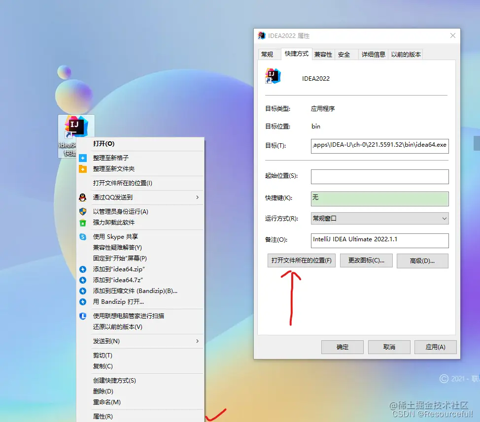 1.右键 图标 -->属性–>打开文件 所在位置