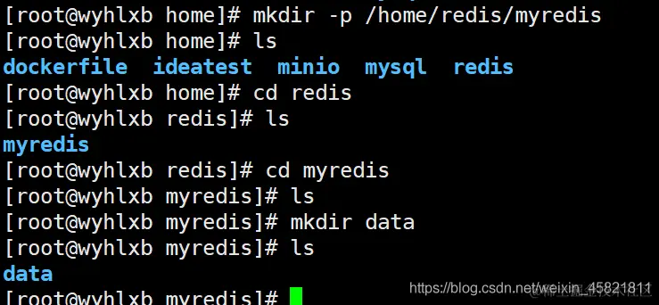 mkdir -p /home/redis/myredis 命令 是不存在就直接创建/home/redis/myredis 文件夹