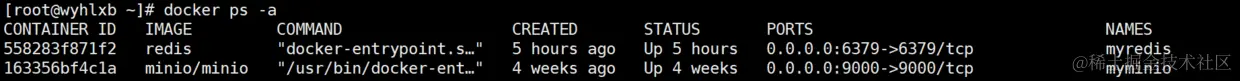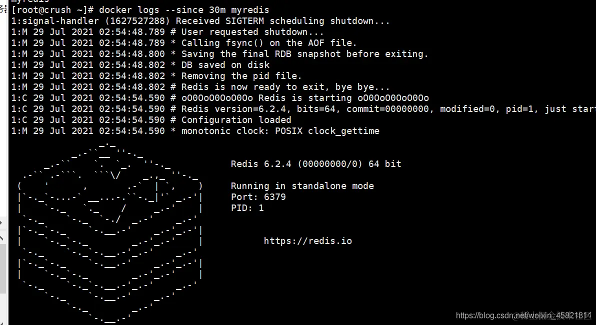 docker ps -a |grep myredis # 通过docker ps指令查看启动状态,是否成功.
