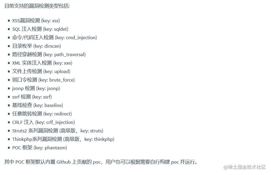 支持的漏洞检测类型: