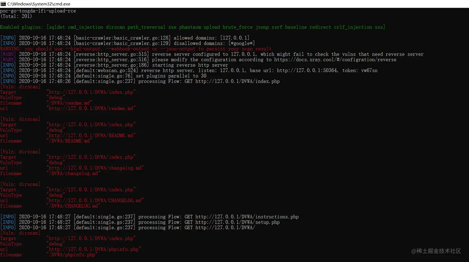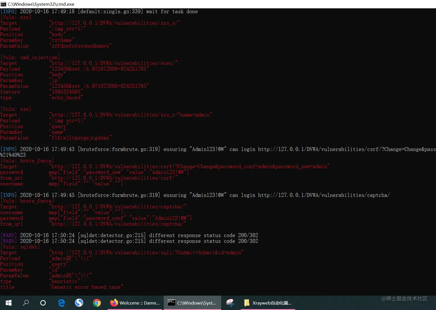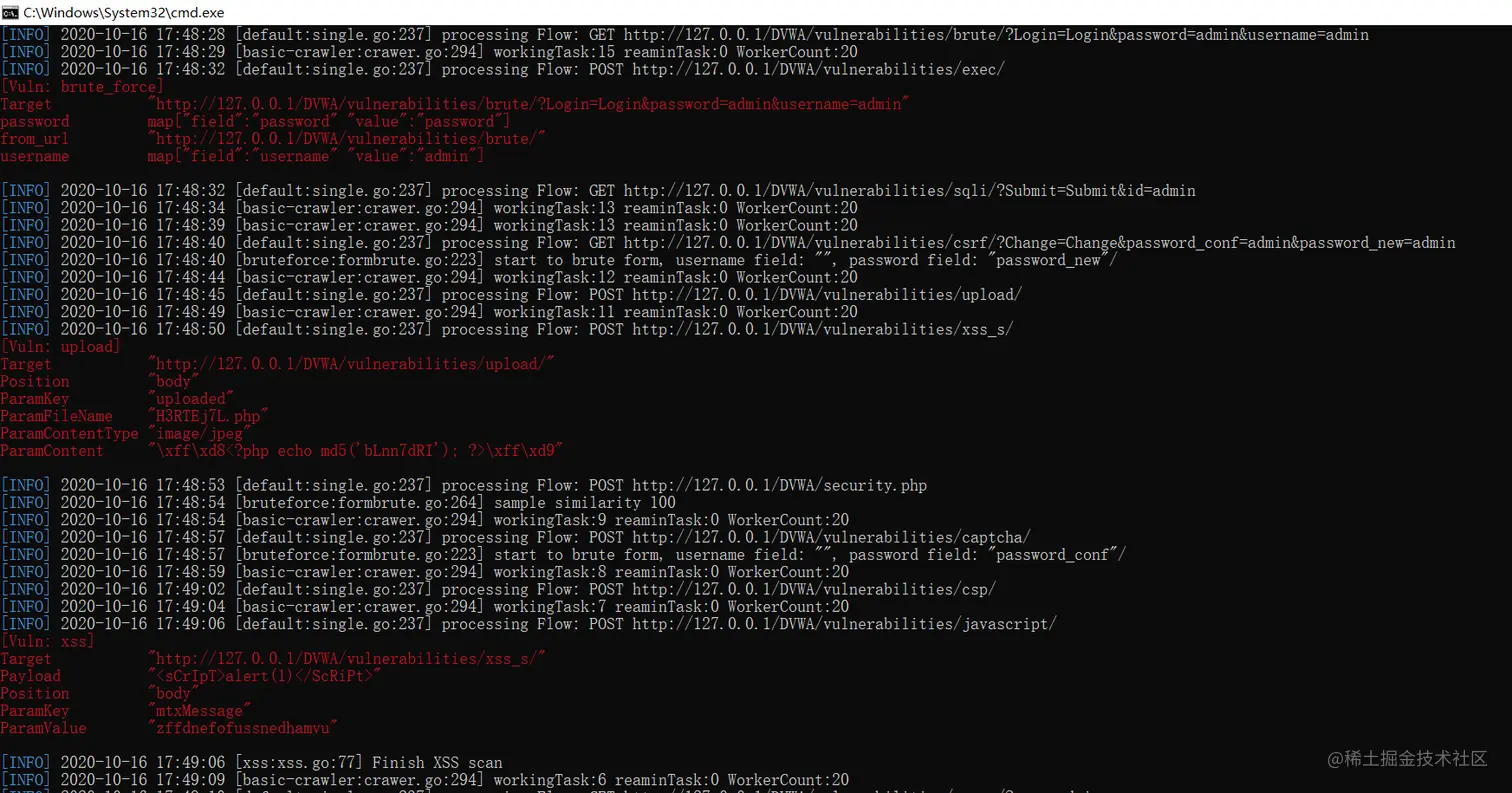 ./xray.exe webscan --basic-crawler http://127.0.0.1/DVWA/index.php --html-output test.html