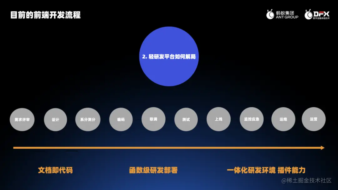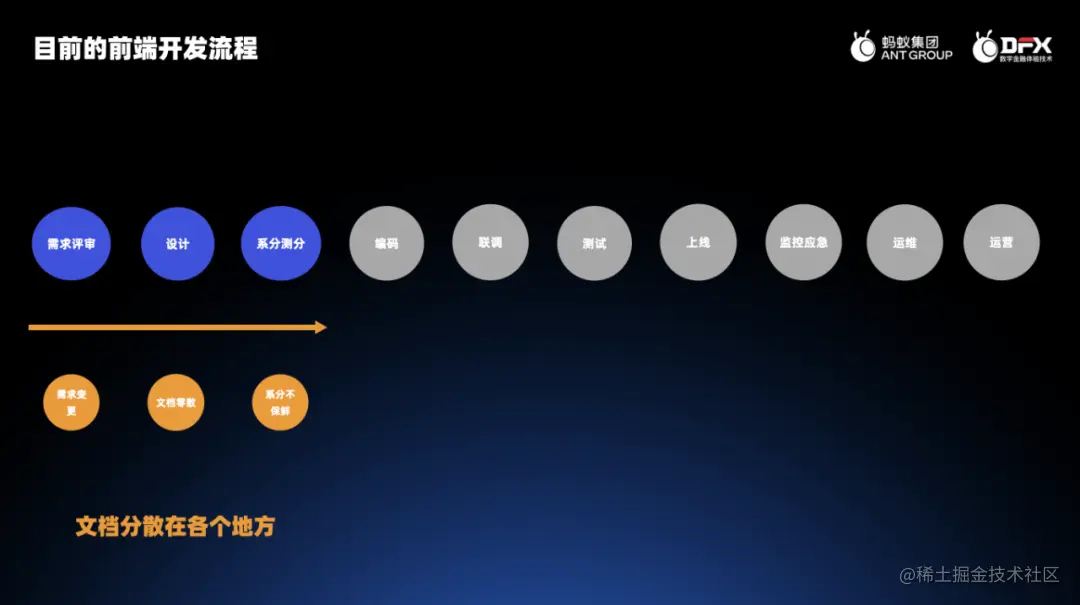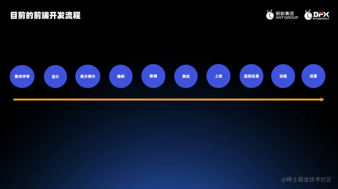 上面大致介绍了蚂蚁业务前端的研发体系,下面我们看一看在实际的前端开发流程中,前端需要做哪些事情,以及哪些可以提效的点。