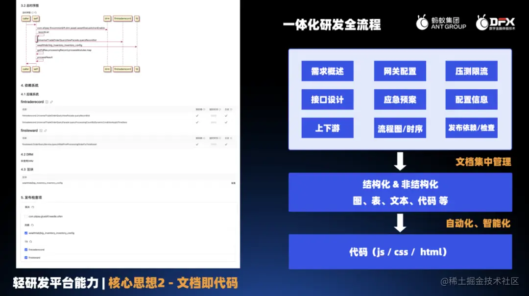 1.文档即代码: 将结构化、非结构化的文档集中管理起来,并通过智能化、自动化等技术生成代码