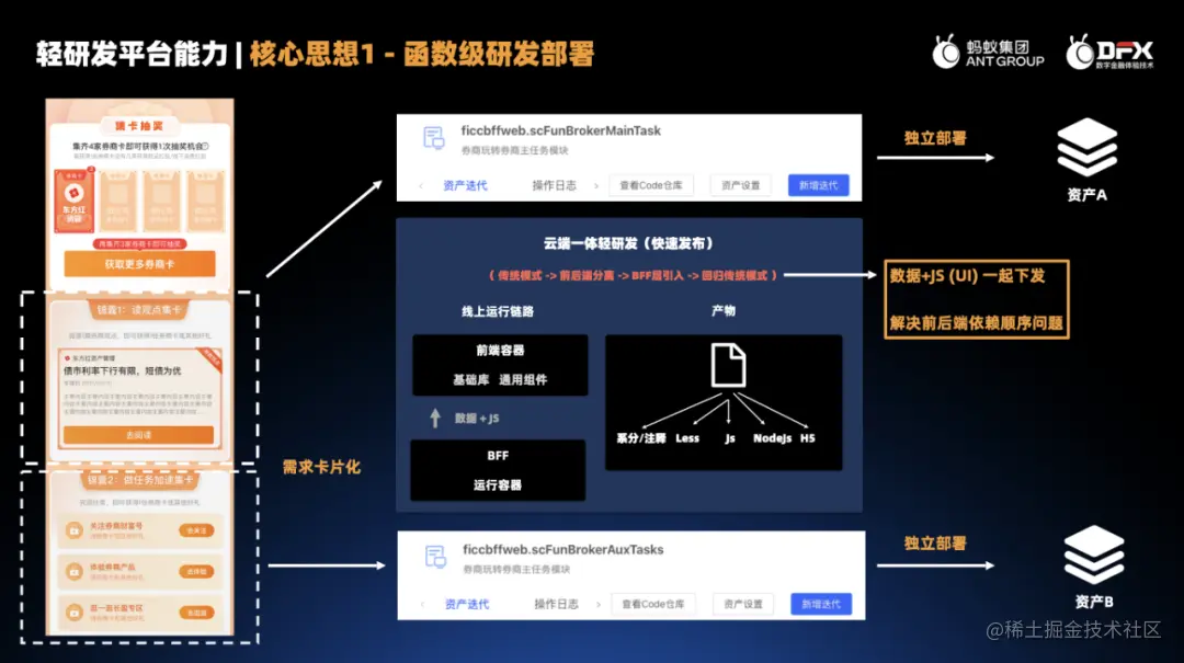 2.函数级研发部署: BFF 接口和一体化卡片,独立部署、开箱即用、无环境依赖