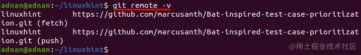 现在,在查看了可用的远程列表后,你必须确定要删除的远程。例如,在我们的例子中,我们要从本地仓库删除 "linuxhint"远程。所以,下面的命令会在这方面帮助我们。