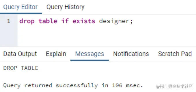 这个查询将不会成功执行。它将显示一个错误信息,如上面提到的snap中显示的那样。这个错误是由于 "NO DELETE NO ACTION"。Postgresql显示违反了约束条件,因为designer_id = 1是针对目前在表中存在的两条记录。