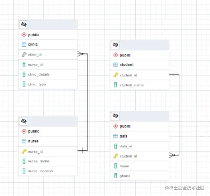 图中表示了表内的外键。从ERD表示法中,我们拍了一张快照来澄清关于图像中的约束的模糊性;你可以看到我们在这篇文章中创建的表的连接。