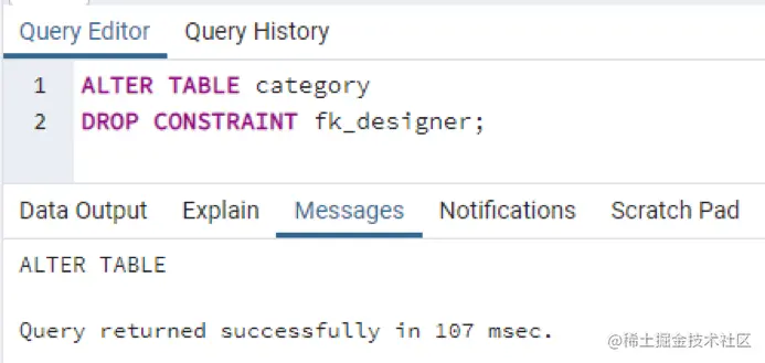 >> Alter table category DROP CONSTRAINT fk_designer;
