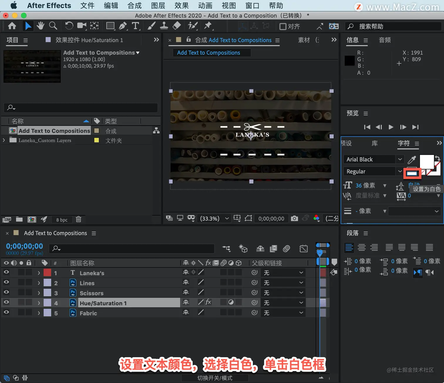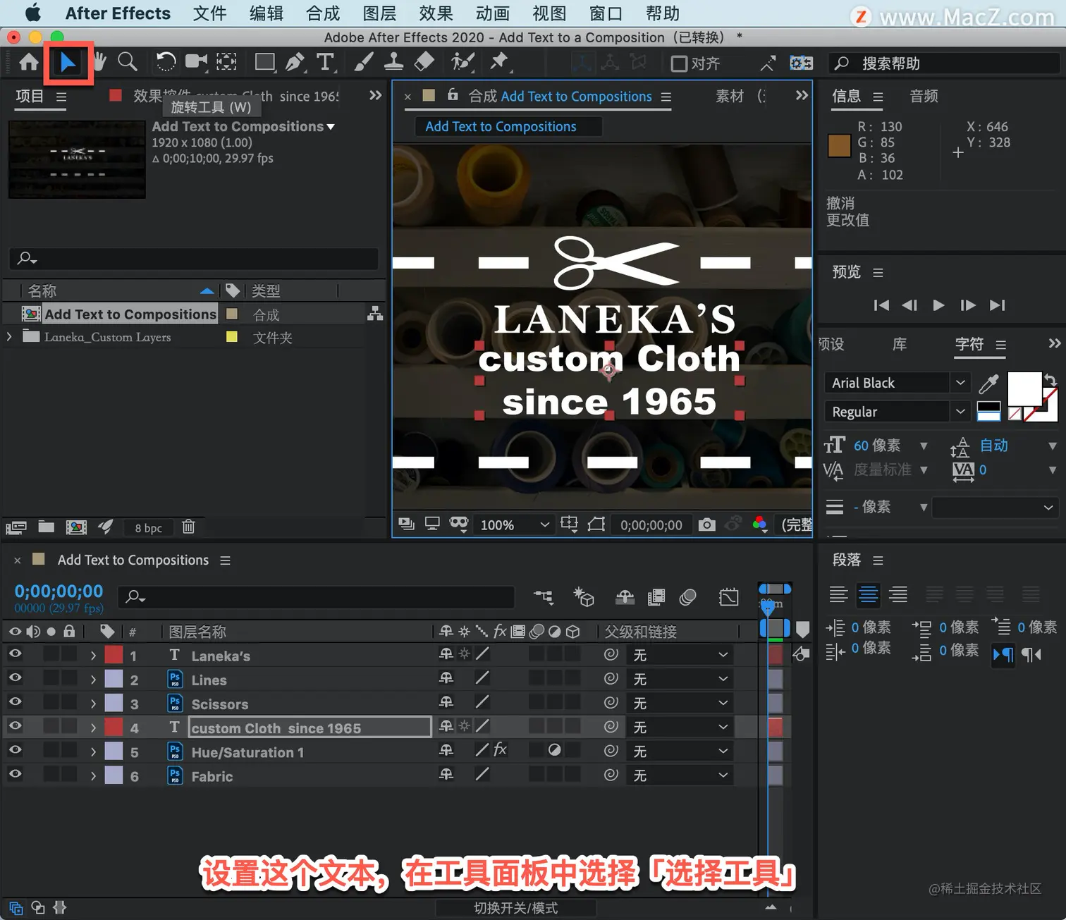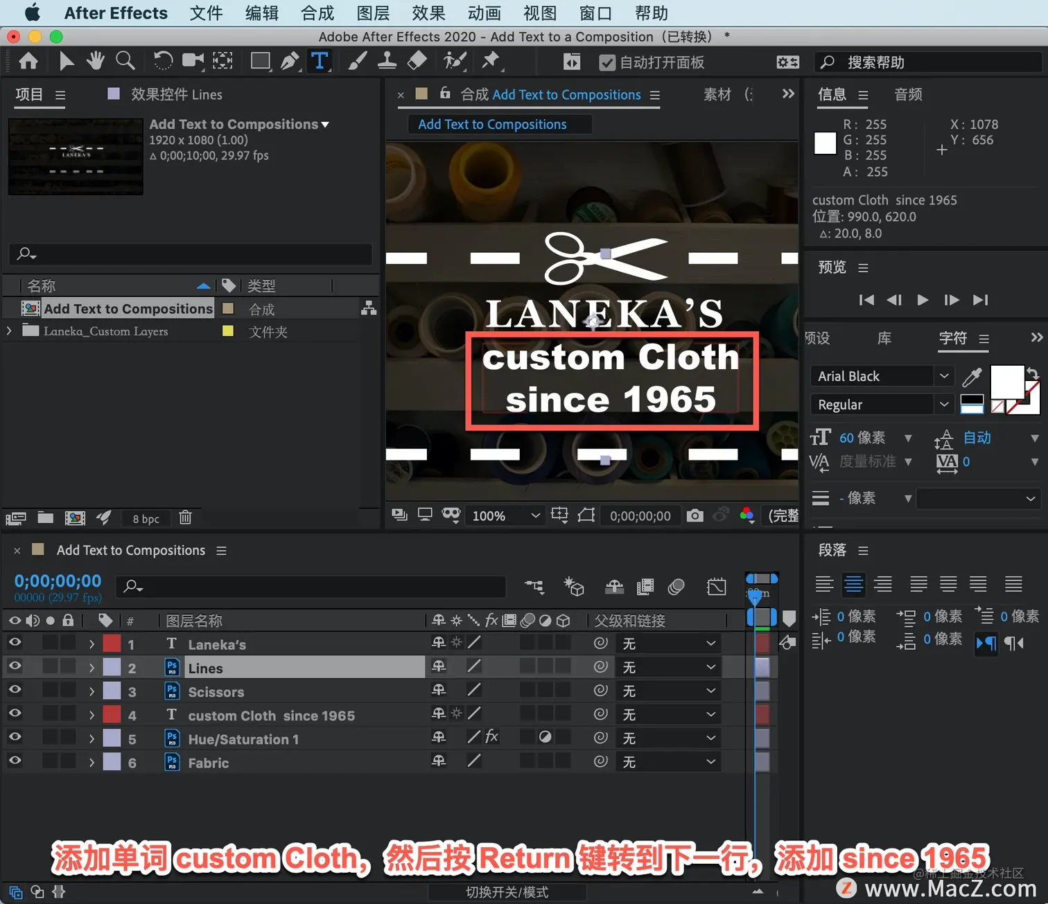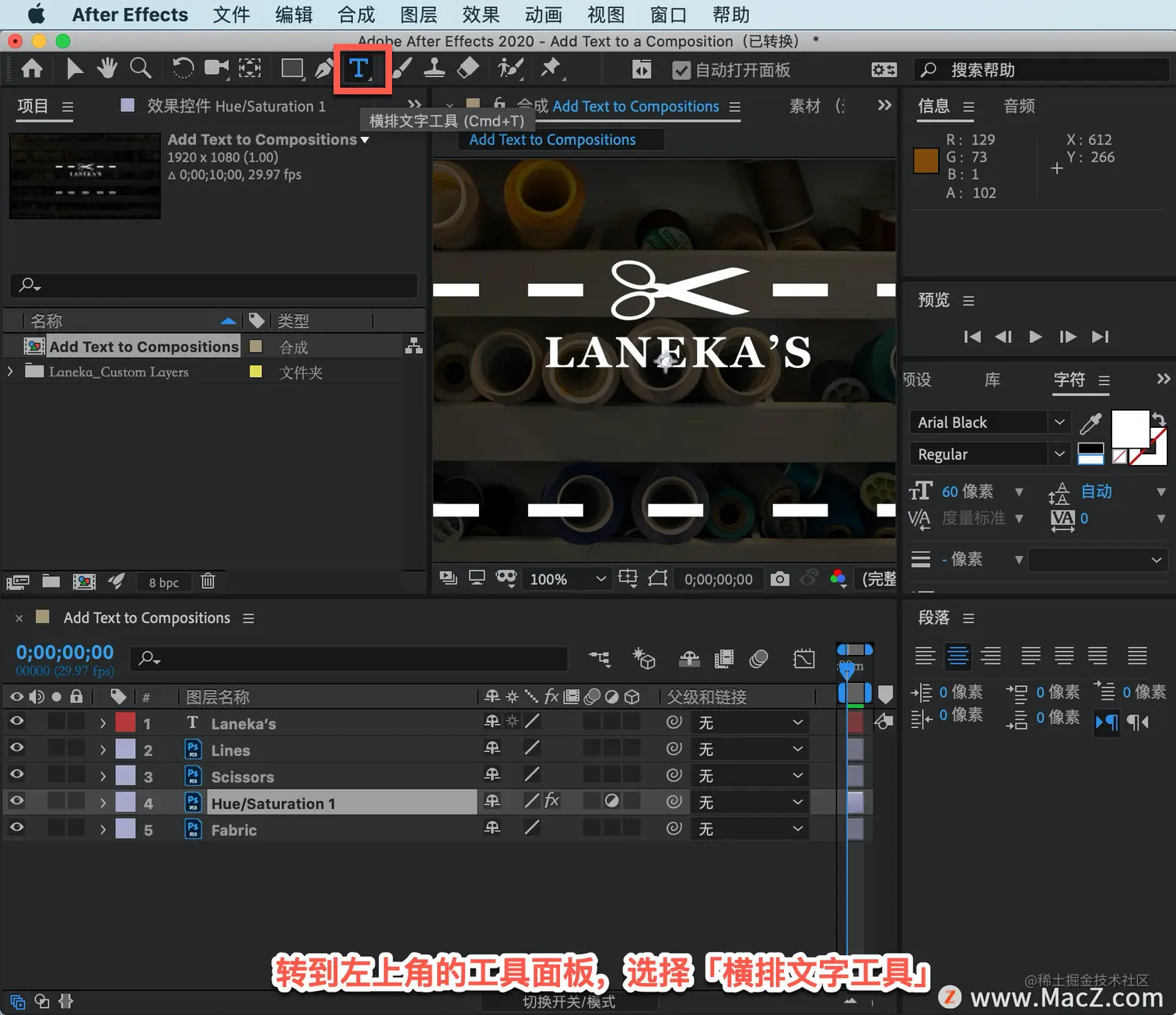 以上就是在 After Effects 中将文本图层添加到合成的方法。