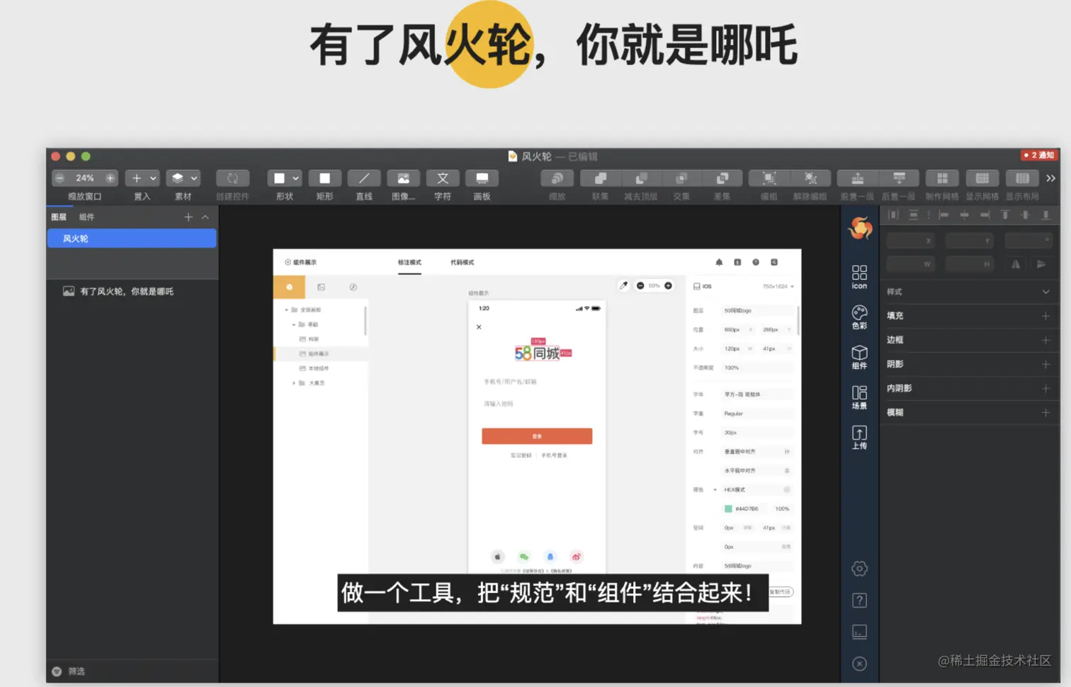 风火轮是前端技术委员会联合58UXD打造的一站式设计、产品、研发协作平台。它包含Sketch插件和协作平台两部分。可实时协同设计规范、承载多种类型设计资产、sketch设计稿在线可视化、自动标注及前端代码的自动解析和生成,是一款产研协同的提效工具。