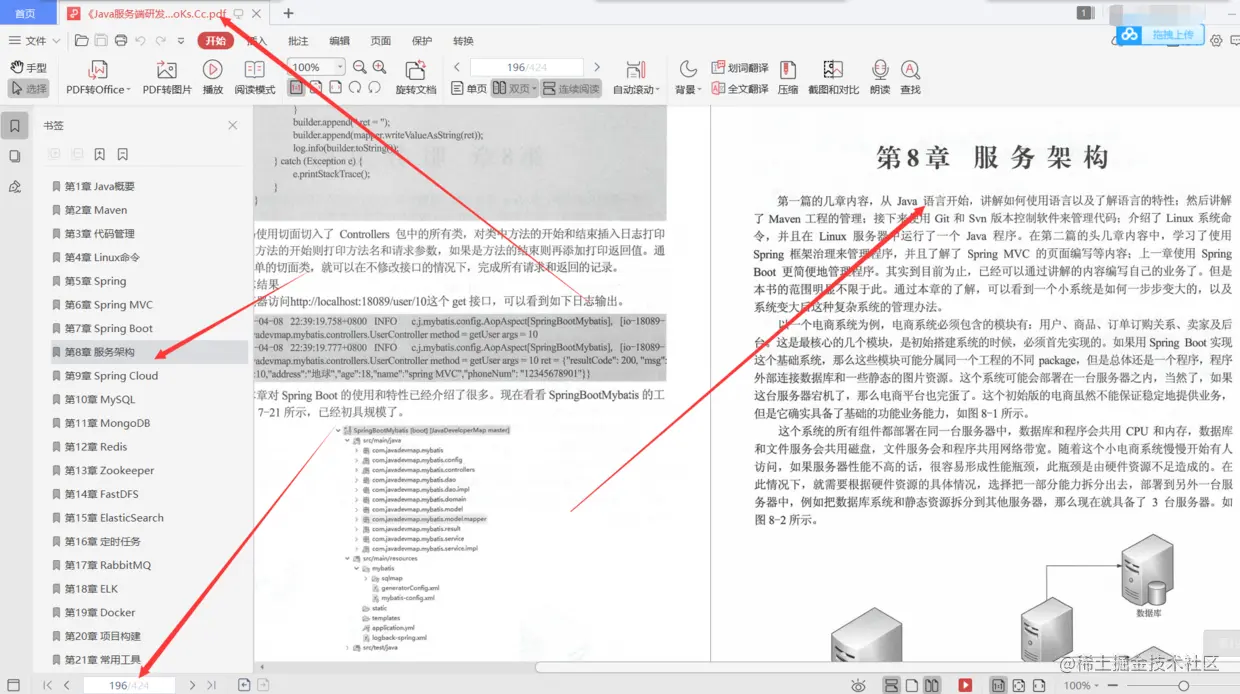 第8章服务架构,第一篇的几章内容,从Java语言开始,讲解如何使用语言以及了解语言的特性;然后讲解了Maven工程的管理;接下来使用Git和Svn版本控制软件来管理代码;介绍了Linux 系统命令,并且在Linux 服务器中运行了一个Java 程序。在第二篇的头几章内容中,学习了使用Spring框架治理来管理程序,并且了解了Spring MVC的页面编写等内容;.上一 章使用 SpringBoot更简便的管理程序。其实到目前为止,已经可以通过讲解的内容编写自己的业务了。但是本书的范围明显不限于此。通过本章的了解,可以看到一个小系统是如何一步步变大的,以及系统变大后这种复杂系统的管理办法。