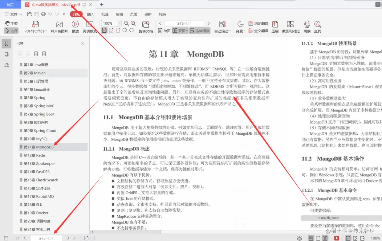 第11章MongoDB,随着互联网业务的发展,传统的关系型数据库RDBMS日(MySQL等)在一-些场合遇到挑战。首先,对数据库存储的容量要求越来越高,单机无法满足需求,很多时候需要用集群来解决问题,而RDBMS由于要支持join, union 等操作,- -般不支持分布式集群。其次,在大数据流行的今天,很多数据都“频繁读和增加,不频繁修改”,而RDBMS对所有操作一视同仁,这就带来了空间浪费以及查询性能问题。另外,互联网业务的不确定性导致数据库的存储模式也需要频繁变更,不自由的存储模式增大了实现的复杂性和扩展的难度。而非关系型数据库NoSQL9正好填补了这块空白,MongoDB 正是非关系型数据库的代表产品之一。