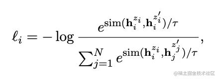 在看本篇论文之前,首先要对SimCSE有所了解。简单概括: 就是通过Dropout实现数据的增广,在一个batch内,正例距离拉进,负例距离拉远。对比损失如下图所示: