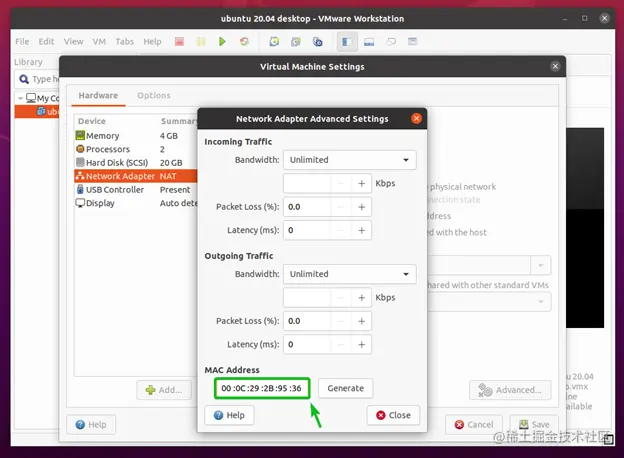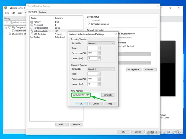 你应该在MAC地址部分找到虚拟机的MAC地址,如下面的截图所示。