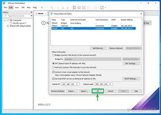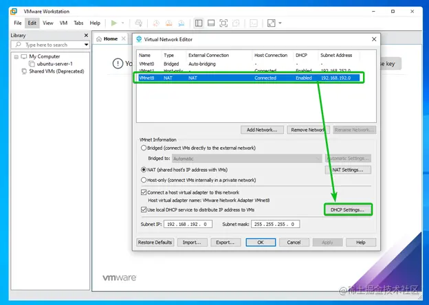 在本文中,我将改变网络接口vmnet8的DHCP IP范围**。vmnet8**是VMware Workstation Pro 16的默认NAT网络接口。