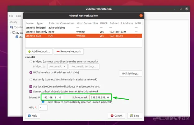 在Linux操作系统上,你不能从VMware Workstation Pro 16的虚拟网络编辑器窗口中改变你所需要的网络接口的DHCP IP范围。你将不得不编辑VMware的DHCP配置文件来做同样的事情。