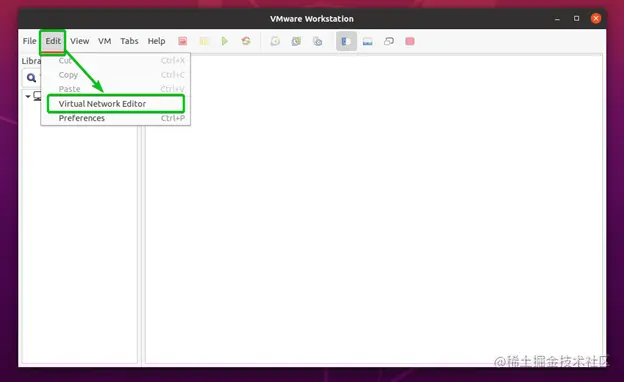 你可以从VMware Workstation Pro 16应用程序中点击编辑>虚拟网络编辑器...来打开虚拟网络编辑器窗口。