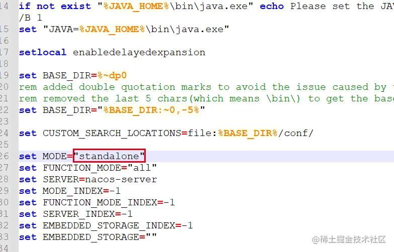 修改startup.cmd,修改启动模式为:standalone(单机模式)