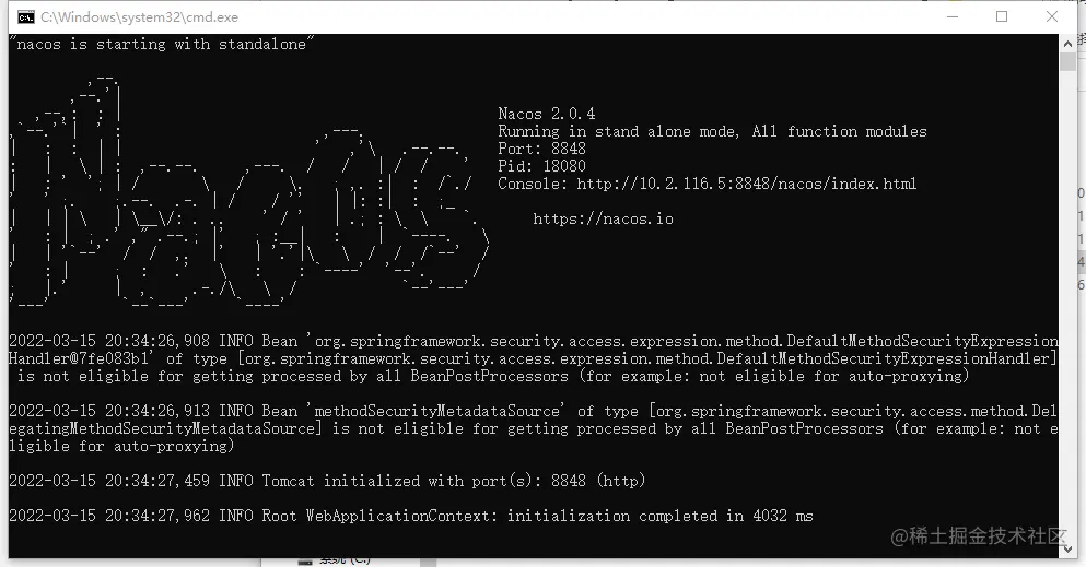 原因是:nacos默认启动方式是cluster(集群模式)集群模式下,需要修改数据库链接信息(application.properties)