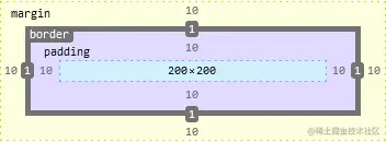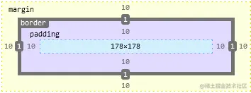 .box元素所占用的实际宽度为200px,而内容的真实宽度则是width-padding-left-padding-right-border-left-width-border-right-width= 200 - 10 - 10 - 1 - 1 = 178。 - 现在高版本的浏览器基本上默认都是使用标准盒模型
