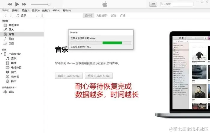 可能很多苹果手机用户还不知道iTunes是什么,你可以把它看作是一个超市,既可以在里面购买音乐、电影等各种商品,还可以进行备份寄存我们的手机数据。我们可以使用将之前备份的手机数据全部迁移到手机上来达到恢复微信聊天记录的效果。