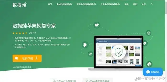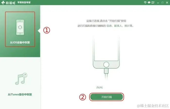 操作前先在官网下载好数据蛙苹果恢复专家至电脑上,安装时记得推出电脑管家等杀毒软件。安装完毕后具体的恢复操作如下。