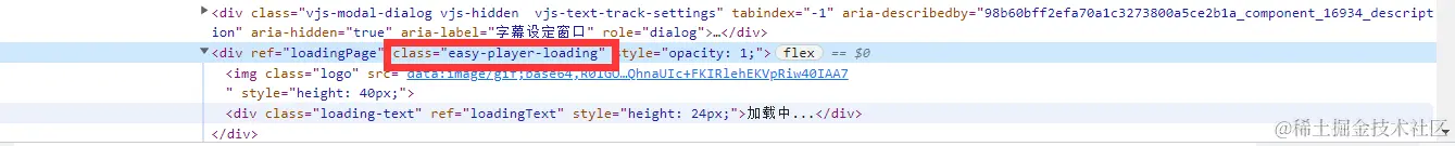 1)查找元素,找到对应的播放器loading的标签,如下图: