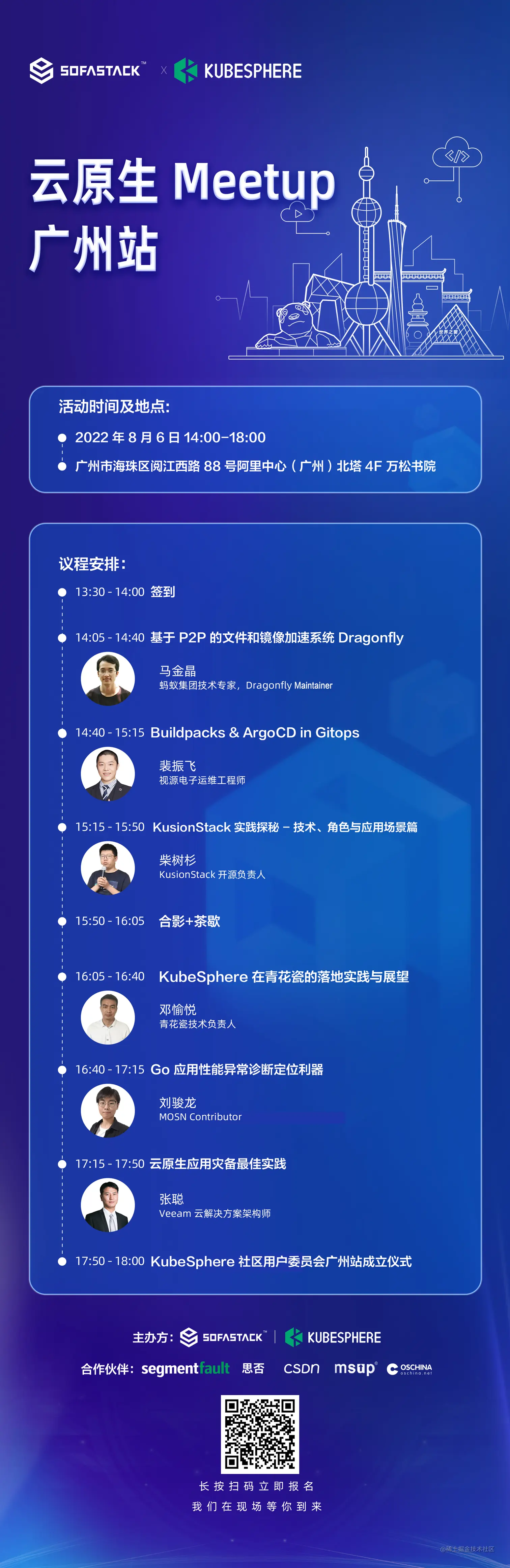 此次 Meetup 也是第一次走进广州组织,欢迎广州当地的云原生爱好者和 KubeSphere 用户参与,享受这一技术交流的“盛宴”。