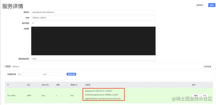 在日常开发中,大家可能对数据的使用比较少,但是在元数据中可以显示一些服务的信息,例如:注册时间。