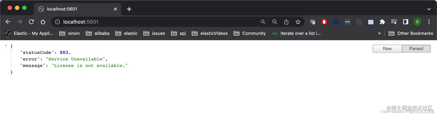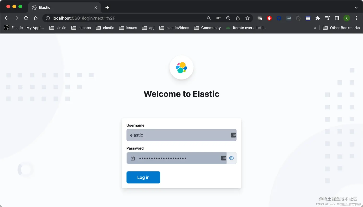 如果这个时候,我们尝试访问 Kibana,我们将看到如下的信息: