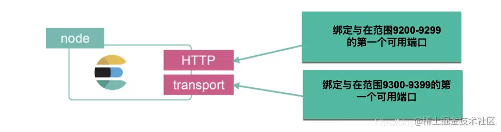 - HTTP:用于 HTTP 通信绑定的地址和端口,这是 Elasticsearch REST API 公开的方式