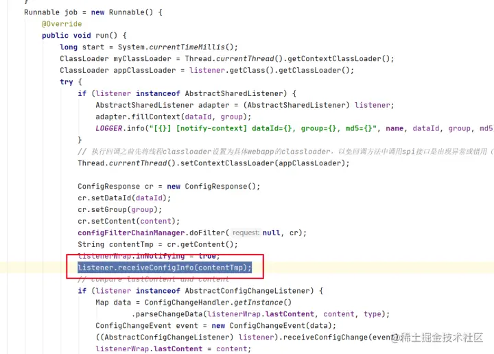 - 客户端接收到通知后,直接实现 Listener.receiveConfigInfo() 方法处理回调数据就可以了。