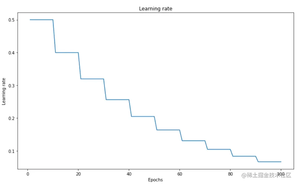 到目前为止,我们只看了连续的衰减策略,那么离散的呢?接下来,我们将继续讨论流行的离散阶梯式衰减,又称基于阶梯的衰减。